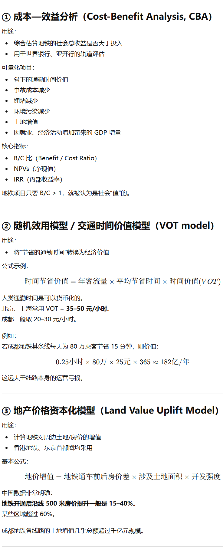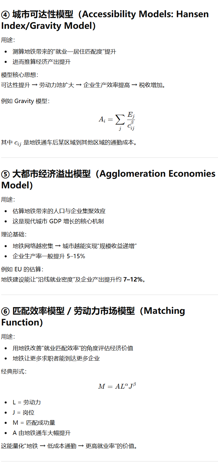 | 就业与生产效率提升 | ✔ | 可达性模型、集聚经济模型 |